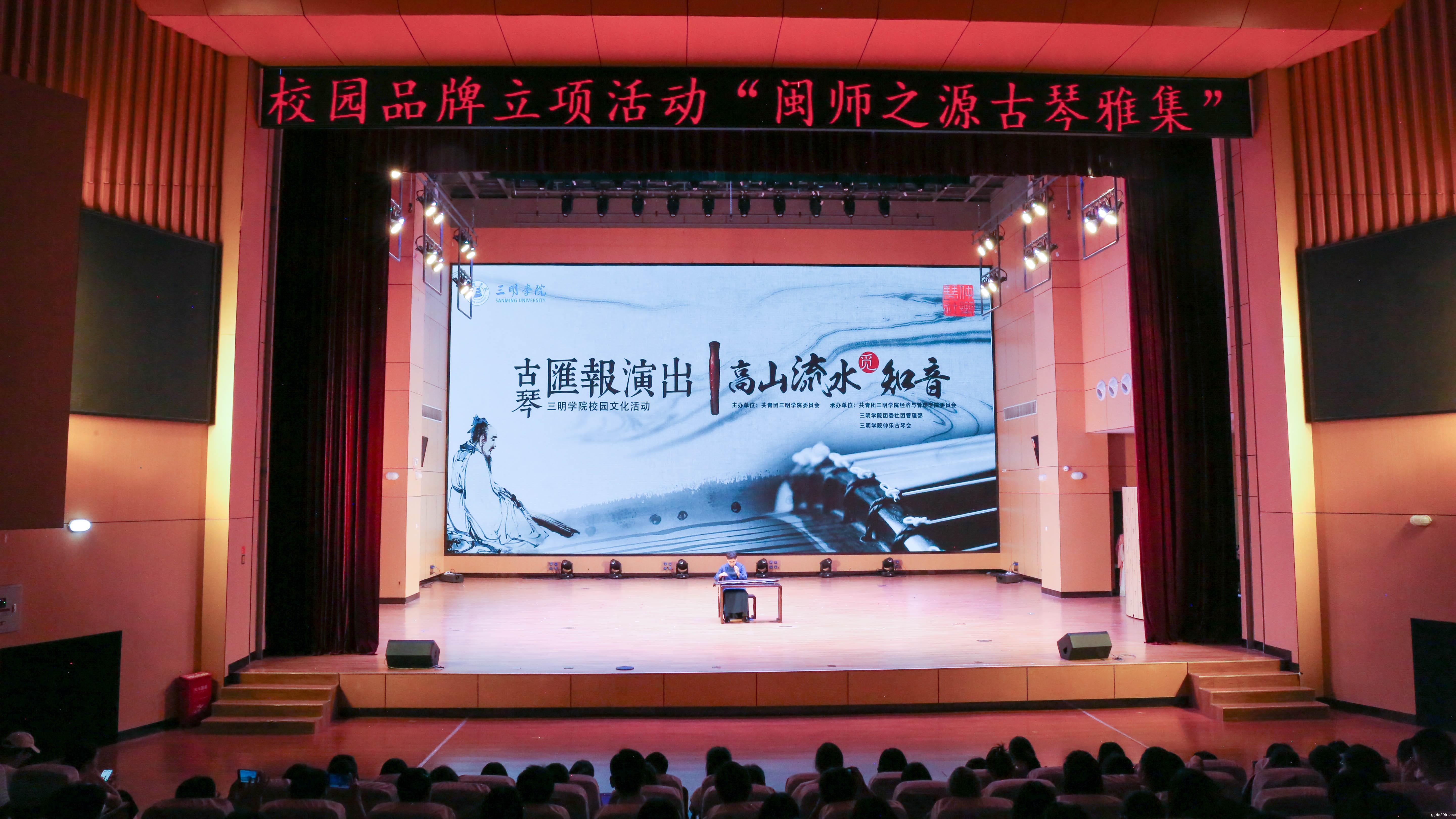 为弘扬中华优秀传统文化,6月13日晚,由米兰手机版app下载安装团委主办,仲乐古琴社等单位承办的“闽师之源古琴雅集”音乐会在米兰手机版app下载安装艺术楼音乐厅举行。三明市宣传部常务副部长、二级巡视员陈红兴,三元区社会工作部四级调研员张双,市文联文艺院院长林晓晶,市音乐家协会副主席刘丹萍,市古琴协会副会长龙德平等嘉宾出席活动,各县(市、区)古琴协会负责人,米兰手机版app下载安装经济与管理学院党委负责人、师生代表,以及校内外 300余名古琴文化爱好者共同参与。