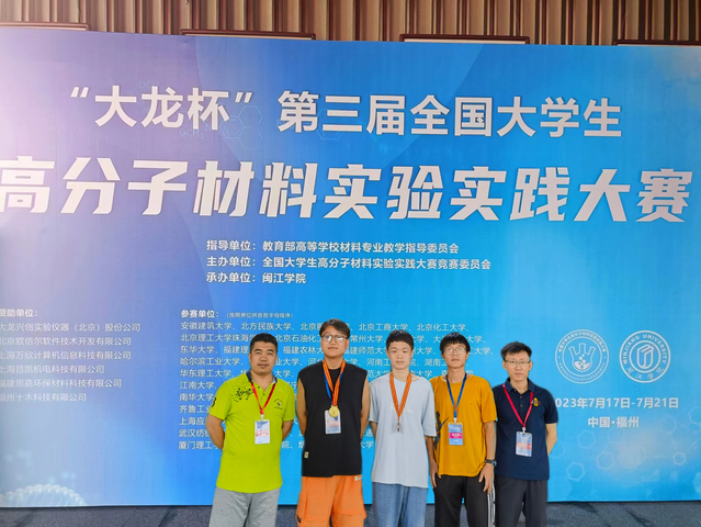 在第三届全国大学生高分子材料实验实践大赛中,资源与化工学院学生李金鸿陈烨豪在王建华、林福星、程德书等老师的指导下分别获得一等奖三等奖的好成绩