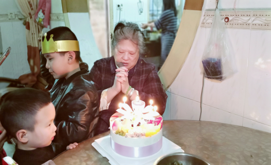 劳碌了一生的外婆,在生日的这一天,有儿女们为她亲手做饭,晚辈们一起为她庆祝生日。质朴的她,像孩子般地对着生日蛋糕许愿,我想她的愿望或许就是希望孩子们能够健康快乐吧!
