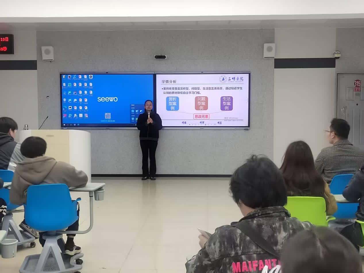 土木工程系刘静老师以“课程思政融入《材料力学》课程建设”为主题,依托校级示范(优秀)课程《材料力学》,从课程学情分析入手,聚焦思政元素融入案例,通过“示范讲解+集体研讨”模式,为学院教师提供了分享和交流的平台。活动过程中,刘静老师结合自身教学经验,围绕《材料力学》课程分享了思政融入课堂的经验,积极与在座教师代表和学生展交流与沟通,听取在场师生意见和建议。