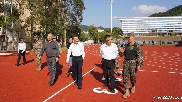 10月11日,校党委书记赖锦隆、校长张君诚前往南区田径场调研指导2024级学生军训工作。学生处、保卫处有关同志陪同。