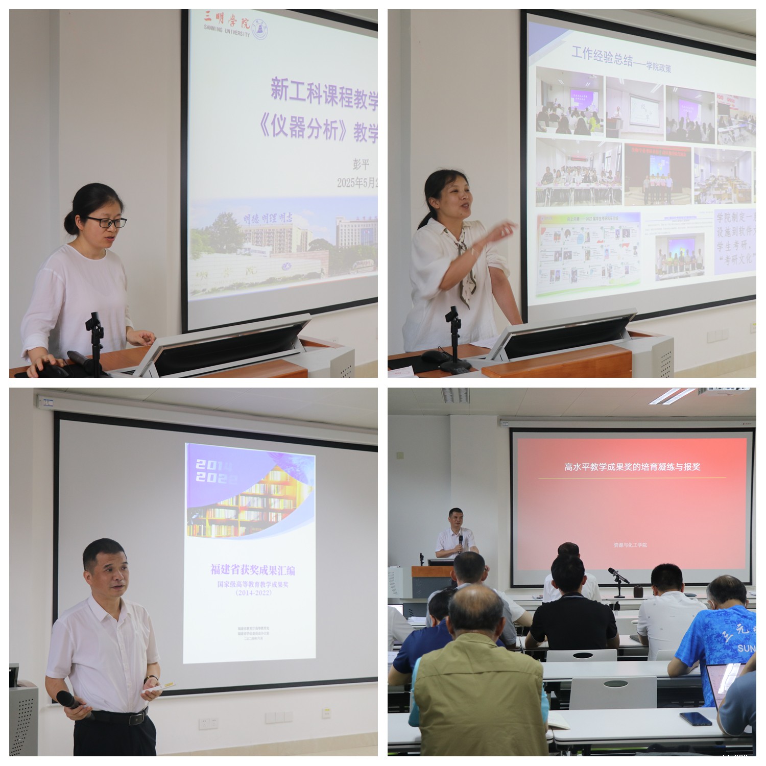 会议邀请教师代表分享工作经验。彭平教授介绍了参加全省青年教师教学竞赛的参赛经验;杨琳副教授介绍了生物工程系考研辅导的典型做法;李奇勇院长以“教学成果奖申报”为核心作专题辅导,结合国家级教学成果奖案例,从选题凝练、材料组织、成果推广等环节逐一解析辅导。