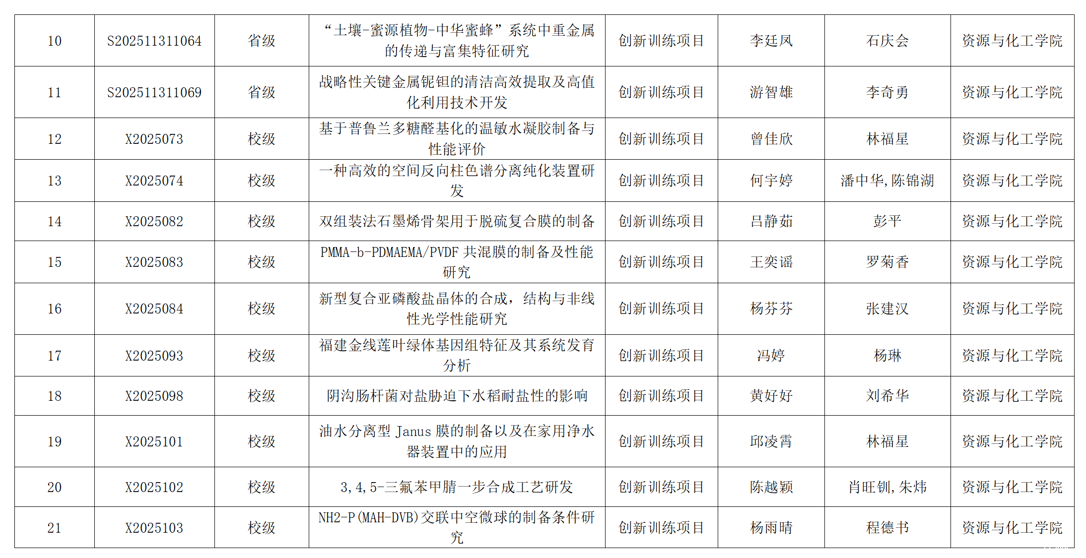 资源与化工学院2025年大学生创新训练计划项目立项获新进展