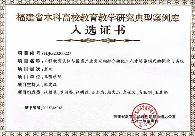 专业是福建地方普通院校唯一实施教育部卓越工程师计划试点专业,入选省一流专业。学生获全国“互联网+”大学生创新创业赛铜奖,连续7届获全国大学生化工设计比赛全国二等奖。