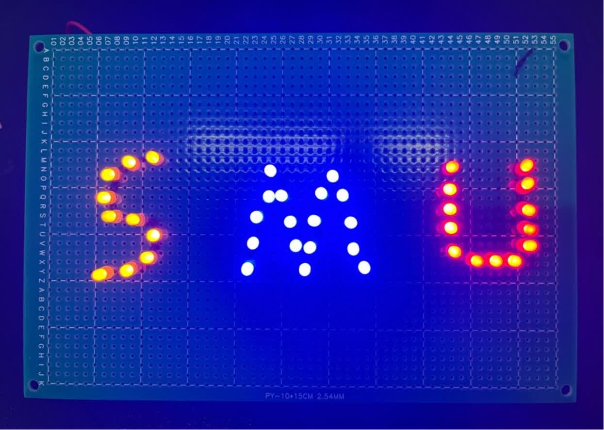 学生通过自主设计、合成、碳化制备了高性能碳材料,并组装成CR2032型扣式电池,成功点亮多个二极管,实现连续发光。