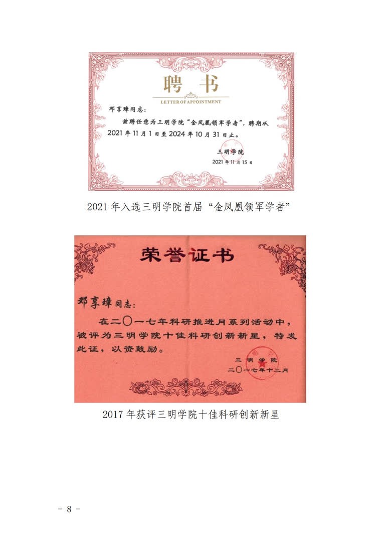近几年来,邓享璋所在的学科团队获国家社会科学基金项目4项、省部级项目8项、出版专著5部,助力学校2023年12月获批国家语言文学推广基地,这也是当年福建省获批的唯一一个国家语言文学推广基地。